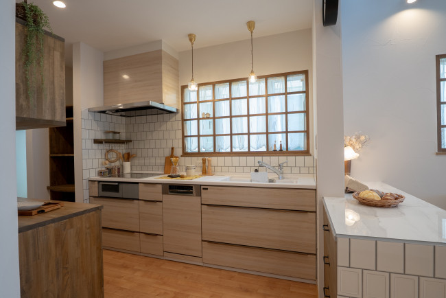 無垢材、タイル、塗り壁など自然素材が溢れた内装となっております。