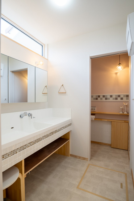小さいお子さんがいるご家庭では、トイレトレーニング中に失敗してしまうこともあります💦水回りを一直線に配置すればトイレ、洗面所、お風呂場が近いので助かります!