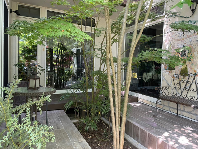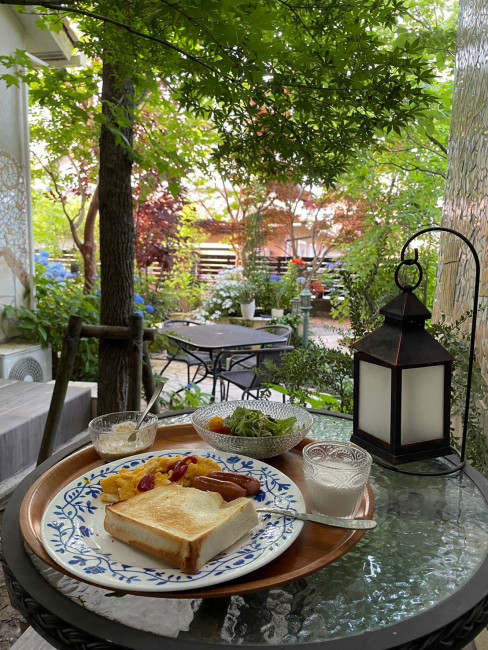 屋外でゆったりとくつろげるソファやテーブルを配置して、天気の良い日は朝食を楽しむのも気持ち良さそうです🍵