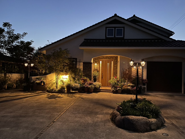 外灯を設置すると昼と夜で違う表情を見せてくれます。