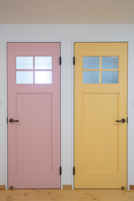近年人気が続いているくすみカラーや、ビビッドカラーなものまでさまざま!子供部屋の扉は明るいカラーにして、親の部屋は落ち着いたカラーにされるお家も多いです。