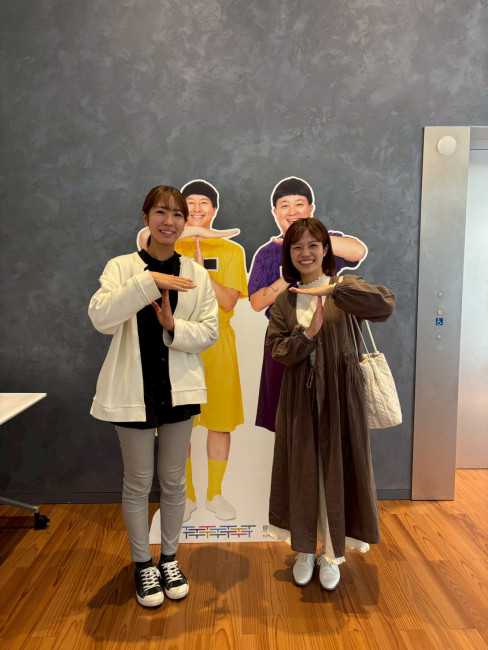 なぜか館内に置いてあったTT兄弟のパネルの前で写真を撮るアミさんと現場監督の山中さんです🤭笑