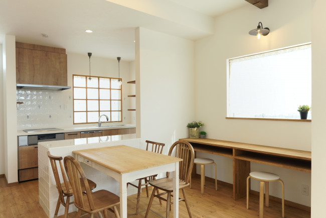 また、造作キッチンからリビングを見渡せる配置にしたことで、料理しながら子どもの様子を確認できる安心感も生まれました。