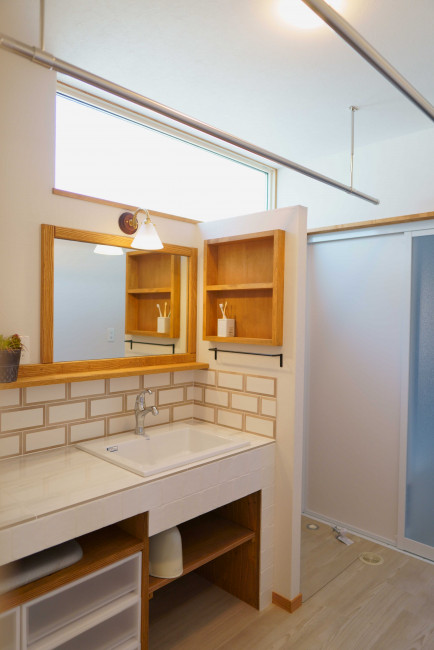 「洗面所で子どもを見ながら室内干しができていいです。友人も洗面所を見て、きれいと言ってくれます。」